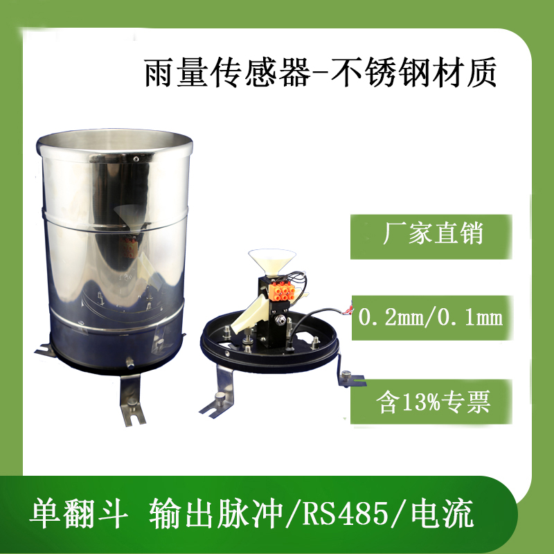本仪器由承雨器部件和计量部件等组成。承雨口采用口径Φ200mm。计量组件是一个翻斗式机械双稳态秤重机构,其功能是将以mm计的降雨深度转换为开关信号输出。